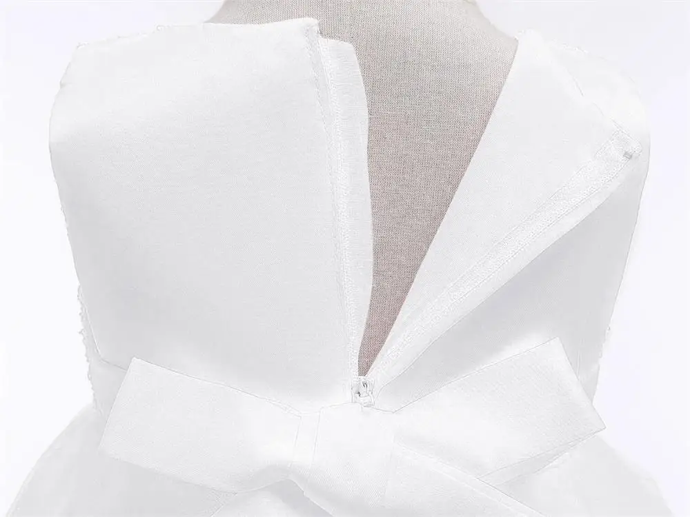 Il s’agit d’une robe de cérémonie spéciale conçue pour les petites filles, particulièrement adaptée aux célébrations du premier anniversaire sur le thème élégant des princesses.
